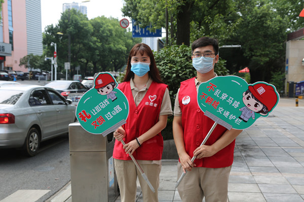 “不亂穿馬路,不翻越交通護欄。”“文明開車,不得車窗拋物。”“紅燈停、綠燈行,黃燈亮了等一等!”“禮讓斑馬線,文明過馬路。”志愿者們對過往行人不文明行為及時進行勸導(dǎo),為株洲文明城市建設(shè)貢獻力量。