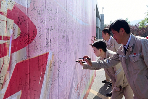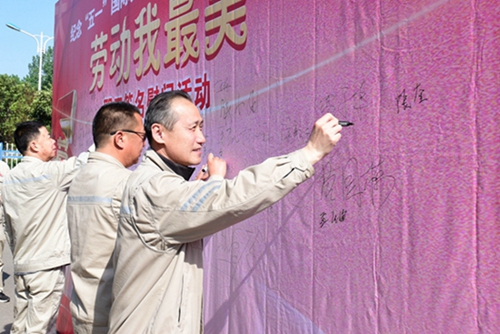 中國電力網(wǎng)訊 致敬勞動者,奮進新時代!為熱烈慶祝中國共產(chǎn)黨成立100周年,喜迎2021年五一國際勞動節(jié)到來,5月1日,大唐淮北發(fā)電廠啟動勞模宣傳月暨“勞動我最美”職工簽名慰問活動,大力弘揚勞動精神、勞模精神和工匠精神,充分營造“勞動最光榮、勞動最崇高、勞動最偉大、勞動最美麗”的企業(yè)氛圍。廠領(lǐng)導(dǎo)參加活動,親切慰問五一當天值守職工。
