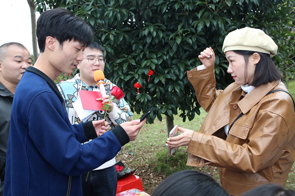 青年聯(lián)誼活動在熱情洋溢的氛圍中拉開了序幕?;顒觾?nèi)容包括自我介紹、才藝展示、有獎?chuàng)尨?、現(xiàn)場分組、游戲環(huán)節(jié)和玫瑰結(jié)緣牽手等。幾輪有獎競答,預(yù)熱了活動現(xiàn)場。隨后,各單位隊長開始挑選隊員,進行分組,分成了紅、藍、橙、紫4組。在主持人的帶動下,每組以競賽的方式完成“你演我猜”和“雙龍戲珠”等一系列豐富多彩的游戲環(huán)節(jié),青年男女之間進行了一次次的互動交流和團隊協(xié)作,緩解了初次見面的緊張羞澀,也讓大家在歡聲笑語中,拉近距離、加深了解,將現(xiàn)場氣氛推向了一個又一個高潮。