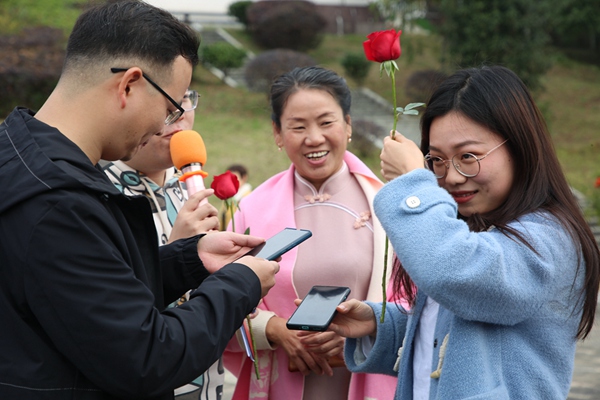 在大家的鼓勵和見證下,有不少青年勇敢地站上舞臺,展示自我,表達心意,為愛牽手,手持玫瑰向心儀的異性表達愛意,多位男女現(xiàn)場交換微信,互換聯(lián)系方式,愿意進一步深入了解。