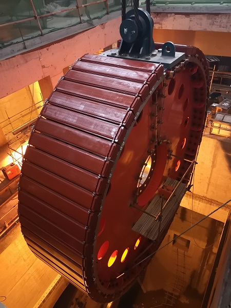 2019年9月29日,首臺(3號機)轉(zhuǎn)子完成吊裝;2020年1月15日,第二臺(5號機)轉(zhuǎn)子完成吊裝。