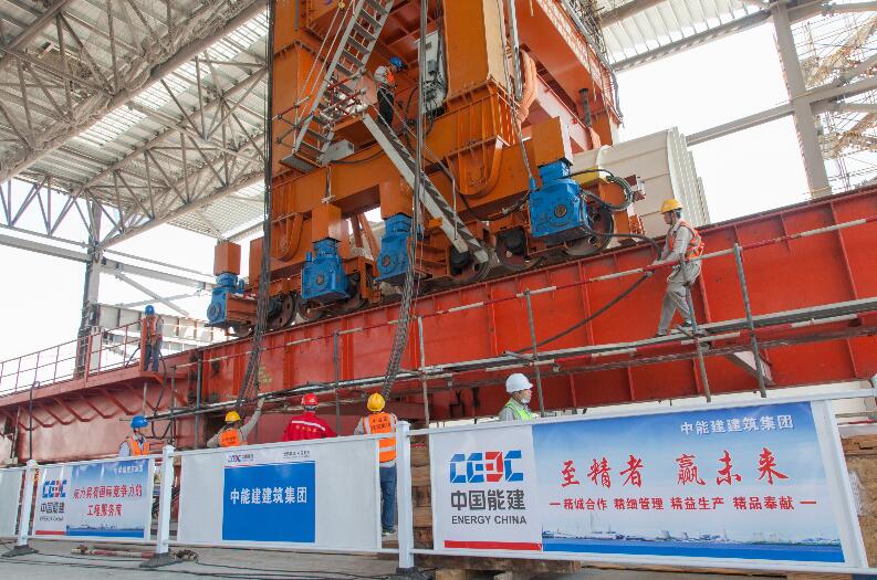 本次就位的1號(hào)燃?xì)廨啓C(jī)發(fā)電機(jī)定子重297噸,采用中能建建筑集團(tuán)特制的600噸專用起吊機(jī)械進(jìn)行吊裝。整個(gè)吊裝過(guò)程平穩(wěn)有序,起重指揮、操作和安裝人員配合默契,全過(guò)程一氣呵成,歷時(shí)2小時(shí)31分,發(fā)電機(jī)定子吊裝順利就位。