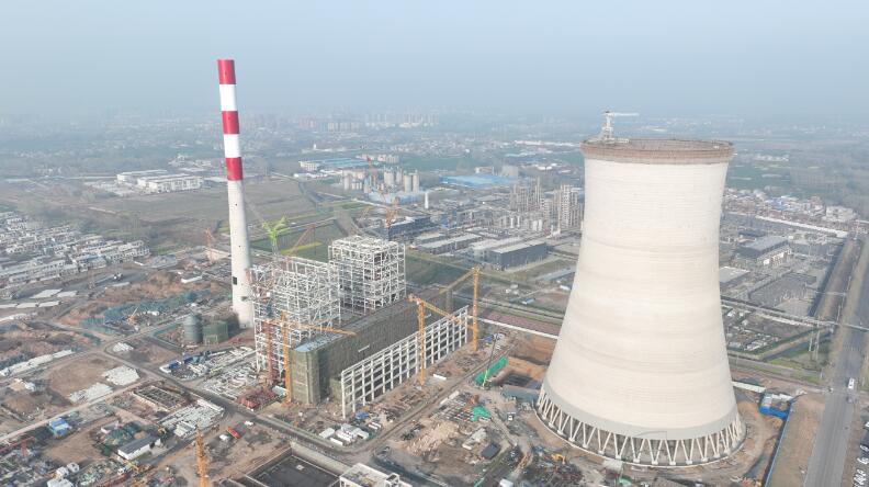 4月1日,由中國能建西北城建承建的河南能信熱電等容量替代民生熱電工程冷卻塔順利到頂。