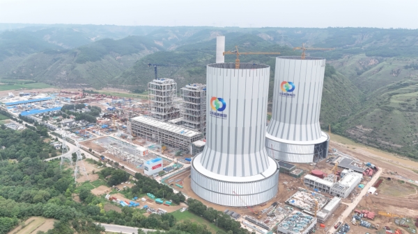 國(guó)內(nèi)最高!山東能源電力集團(tuán)靈臺(tái)電廠間冷塔雙塔封頂