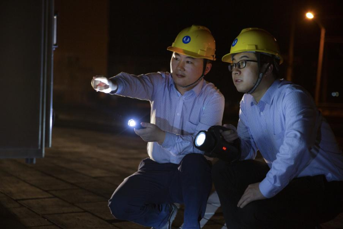 2022年4月,連夜沖刺左岸500千伏線路轉(zhuǎn)接送電。攝影:王廣浩