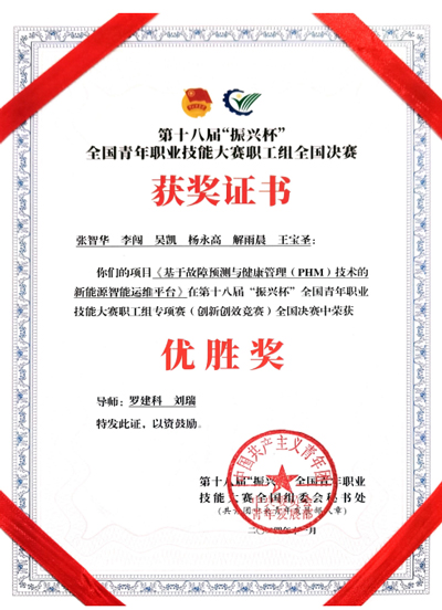 中國電力網(wǎng)訊(通訊員 解雨晨) 日前,電力運營君創(chuàng)科技申報的《基于故障預(yù)測與健康管理(PHM)技術(shù)的新能源智能運維平臺》項目斬獲第十八屆“振興杯”全國青年職業(yè)技能大賽優(yōu)勝獎。