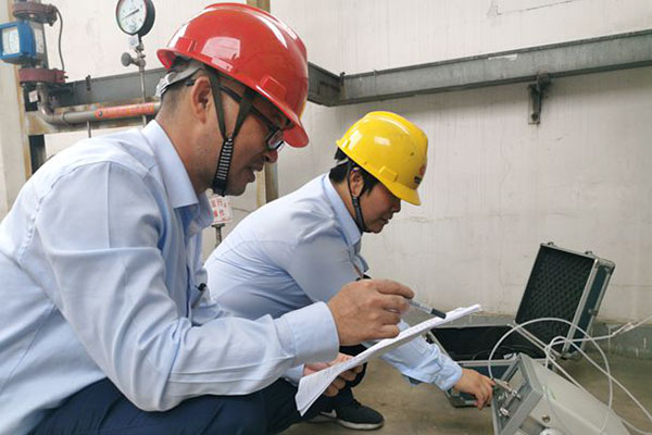 圖為該公司生產(chǎn)運(yùn)行人員正在測(cè)入廠氫氣純度