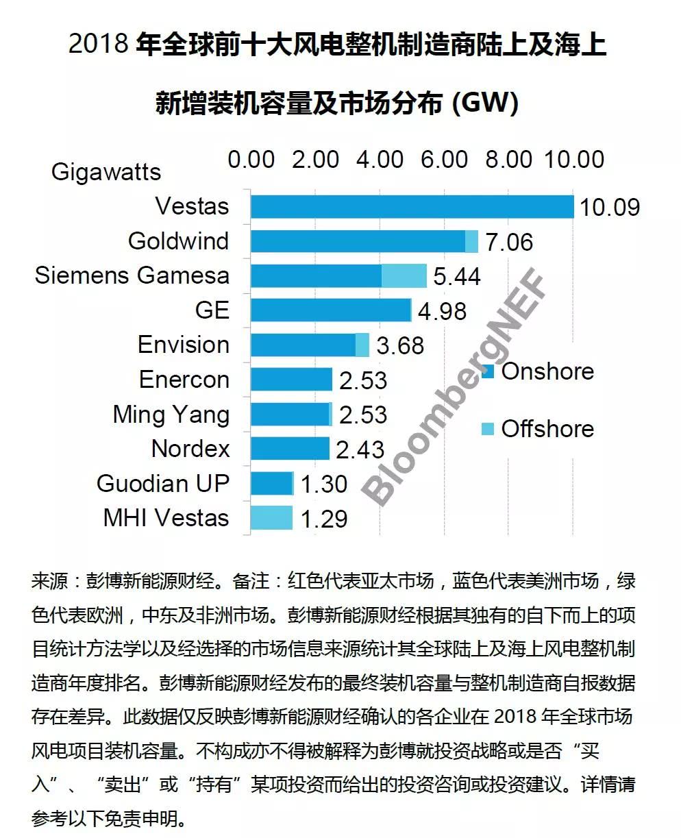 據(jù)悉,國際著名咨詢機構彭博新能源財經(jīng)昨日正式發(fā)布了2018年全球風電整機商排名。具體排名及報告如下:
