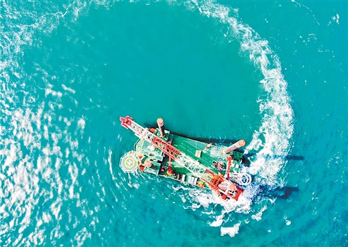 12月16日,由中國鐵建港航局集團(tuán)有限公司投資打造的國內(nèi)首艘1300噸自升自航式風(fēng)電安裝船“鐵建風(fēng)電01”在江蘇啟東交付使用。圖為“鐵建風(fēng)電01”大回轉(zhuǎn)試驗(yàn)。陳耀金攝(中經(jīng)視覺)