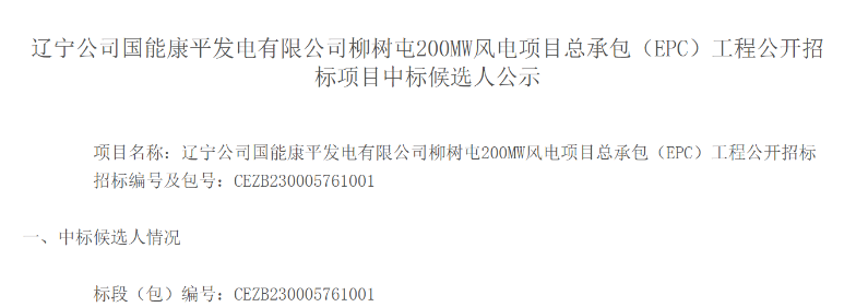 國能康平發(fā)電有限公司柳樹屯200MW風電項目總裝機容量為200MW,安裝43臺單機容量為4550kW和1臺單機容量為4350kW的風電機組,所選機型單位千瓦掃風面積不低于6.2m2/kW,葉輪直徑不低于190m,輪轂高度140m,新建一座220kV升壓站。計劃工期:2023年7月31日-2024年6月30日