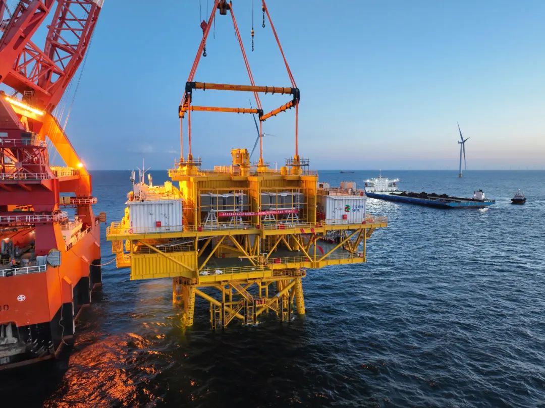 我國最大模塊化海上升壓站吊裝就位