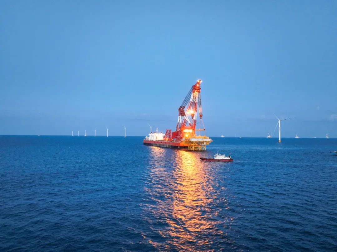 8月23日18時58分,國家電投山東能源投資建設的山東半島南U1場址海上風電項目海上升壓站上部組塊與導管架精準對接,標志著國內(nèi)單體容量最大、集電線路電壓等級最高的模塊化預裝式海上升壓站吊裝順利完成。