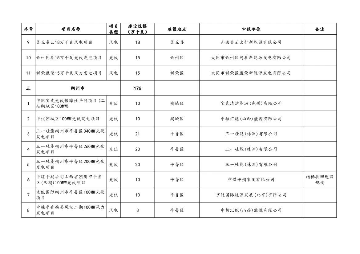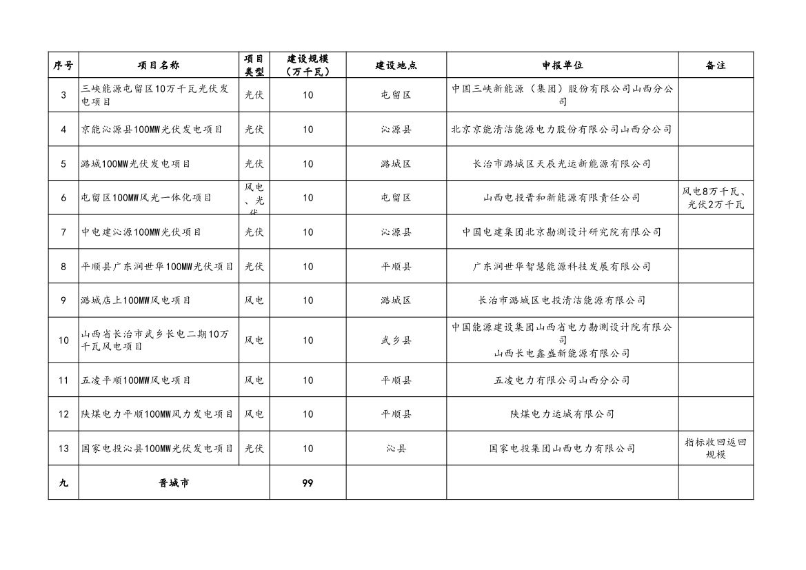 附件:山西省2023年風電、光伏發(fā)電保障性并網(wǎng)項目清單