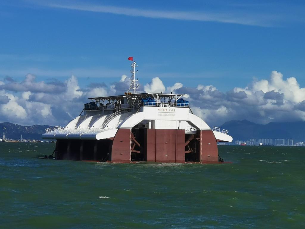 500kW波浪能裝置“舟山號(hào)”(浮起狀態(tài))(中國(guó)科學(xué)院廣州能源研究所供圖)