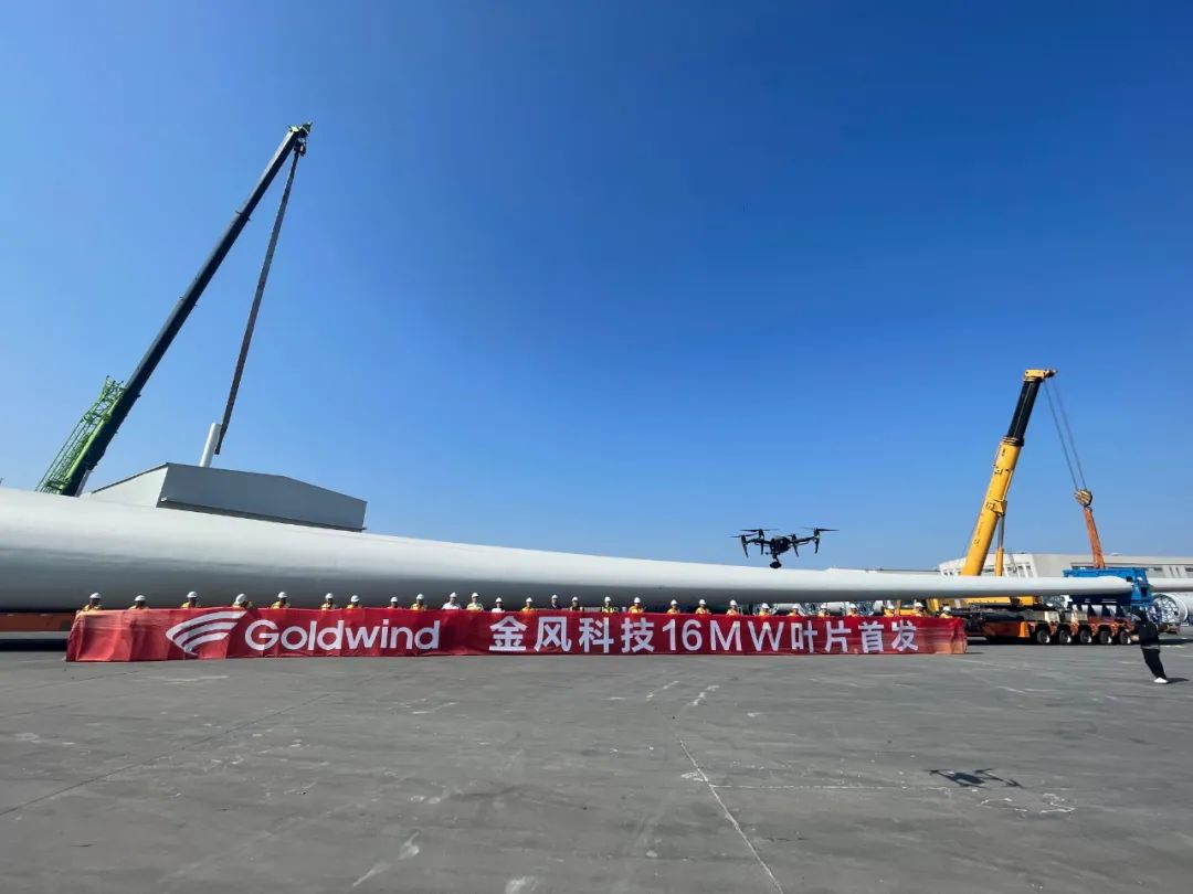 金風(fēng)科技16MW海上風(fēng)電機組的單支葉片長123米,能夠同時容納300個成年人并排站在上面;機組葉輪直徑達到252米,相當(dāng)于6架C919客機首尾相連,掃風(fēng)面積相當(dāng)于7個足球場。同時,16MW機組葉片的內(nèi)部主梁結(jié)構(gòu)首次采用碳纖維材料,重量減輕了20%,96%以上的材料實現(xiàn)了國產(chǎn)化;技術(shù)工藝上更擁有100%的自主知識產(chǎn)權(quán)。這為我國風(fēng)電技術(shù)走向國際市場打下了堅實的基礎(chǔ)。