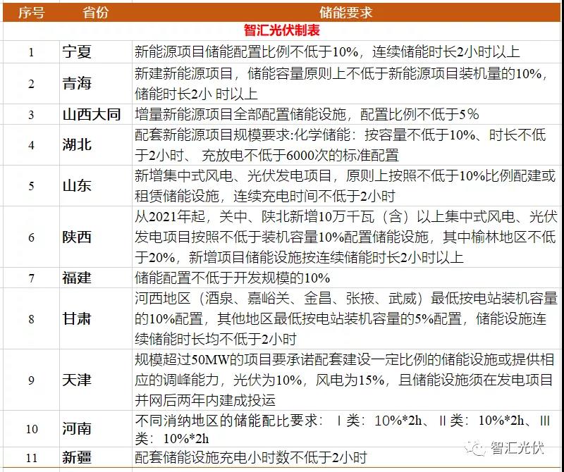 對于由電網(wǎng)承擔(dān)消納任務(wù)的保障性規(guī)模,部分省份也要求配一定能比例的儲能。根據(jù)各省的競爭性配置文件,大部分省份的保障性規(guī)模儲能配置要求為10%功率、2小時,如下表所示。