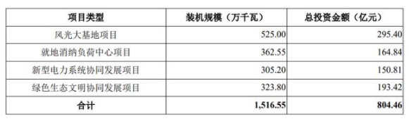 本次募集資金將投入風(fēng)力發(fā)電、太陽能發(fā)電項(xiàng)目建設(shè)以及補(bǔ)充流動(dòng)資金,其中,補(bǔ)充流動(dòng)資金擬使用募集資金約90億元,投入風(fēng)力發(fā)電、太陽能發(fā)電項(xiàng)目建設(shè)擬使用募集資金約210億元,項(xiàng)目情況如下: