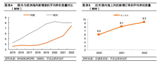 海上風(fēng)機(jī)方面,整體看,歐美單機(jī)容量14-15MW、葉輪直徑236米左右的大兆瓦海上新品有望于2024-2025年開(kāi)始批量交付。
