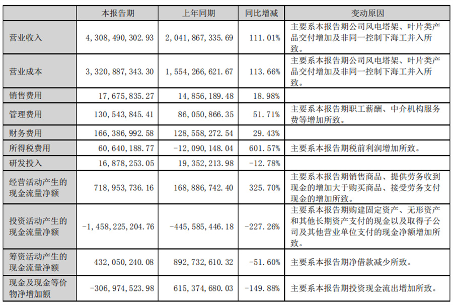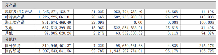 1、塔筒業(yè)務(wù)(含其他海上風(fēng)電及海洋工程裝備) 公司主營(yíng)風(fēng)力發(fā)電機(jī)組塔筒等陸上與海上風(fēng)力發(fā)電裝備及海洋工程裝備制造、銷售等業(yè)務(wù)。風(fēng)力發(fā)電設(shè)備業(yè)務(wù)方面, 主要產(chǎn)品為自主品牌的陸上風(fēng)電塔筒和海上風(fēng)電塔筒、導(dǎo)管架、管樁、升壓站平臺(tái)及相關(guān)輔件、零件,是陸上及海上風(fēng) 力發(fā)電機(jī)組的主要部件之一,主要起支撐作用。海洋工程設(shè)備業(yè)務(wù)方面,主要產(chǎn)品為海洋工程平臺(tái)相關(guān)輔件、零件以及 用于海洋工程的各類鋼結(jié)構(gòu)件,相關(guān)產(chǎn)品作用涵蓋海洋工程的各個(gè)方面,視具體訂單而有所不同。上述業(yè)務(wù)經(jīng)營(yíng)模式主 要是以銷定產(chǎn),主要業(yè)績(jī)驅(qū)動(dòng)因素為國(guó)家相關(guān)產(chǎn)業(yè)及行業(yè)政策、銷售價(jià)格、原材料價(jià)格、收入確認(rèn)項(xiàng)目數(shù)量、應(yīng)收款回 款、人民幣匯率波動(dòng)等。