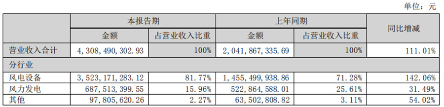(二)主要產(chǎn)品及用途 報(bào)告期內(nèi),公司主要產(chǎn)品為風(fēng)力發(fā)電用風(fēng)機(jī)塔架(含海上風(fēng)機(jī)塔架及單樁)、錨栓以及新能源發(fā)電 業(yè)務(wù)。風(fēng)力發(fā)電設(shè)備通常包含風(fēng)電機(jī)組、風(fēng)電支撐基礎(chǔ)以及輸電控制系統(tǒng)三大部分,公司所生產(chǎn)風(fēng)機(jī)塔 筒及單樁為風(fēng)電設(shè)備支撐系統(tǒng)的重要組成部分。公司新能源發(fā)電業(yè)務(wù)為風(fēng)力發(fā)電場(chǎng)和光伏電站的運(yùn)營(yíng), 其工作原理是將風(fēng)能、光能轉(zhuǎn)化為電能,通過(guò)升壓變電站升壓后輸送至電網(wǎng),完成發(fā)電銷售。