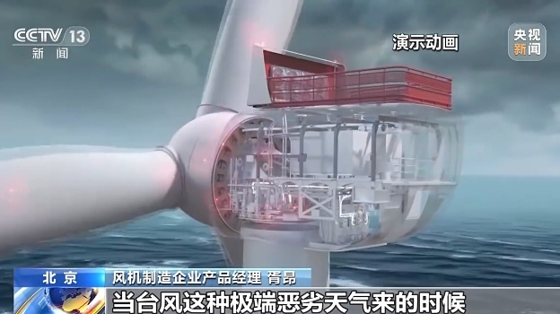 風機制造企業(yè)產(chǎn)品經(jīng)理 胥昂:我們主要應用北斗以及5G,來實現(xiàn)風機最大化利用風資源,來實現(xiàn)發(fā)電量的提升;當臺風這種極端惡劣天氣來的時候,通過北斗衛(wèi)星的一個信號傳遞,來實時控制風機的方向以及姿態(tài),能夠安全、有效度過整個臺風的考驗。