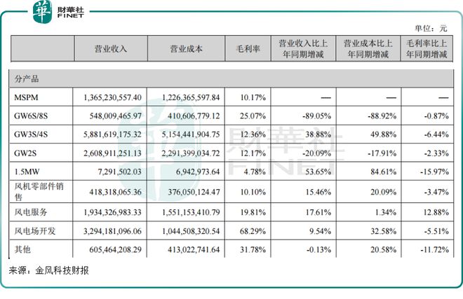此外,受風電平價及行業(yè)競爭加劇等因素影響,金風科技產品毛利率出現(xiàn)下降。