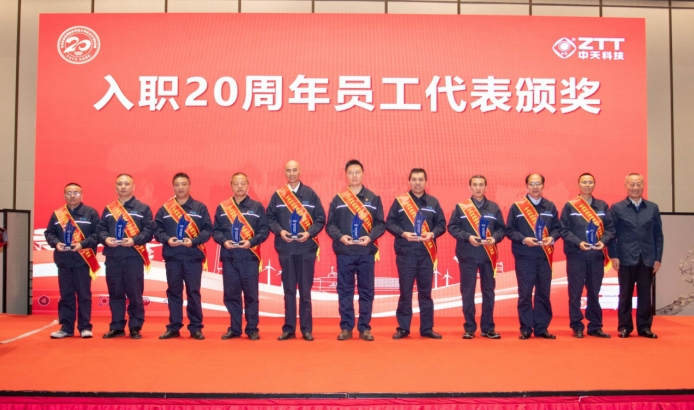 大會回顧了中天海纜二十年來的發(fā)展歷程,發(fā)布高壓海纜、高壓陸纜新產品新技術成果。會議表彰了在中天海纜奮斗20年的員工,薛濟萍為員工代表頒發(fā)履職20周年紀念獎杯。