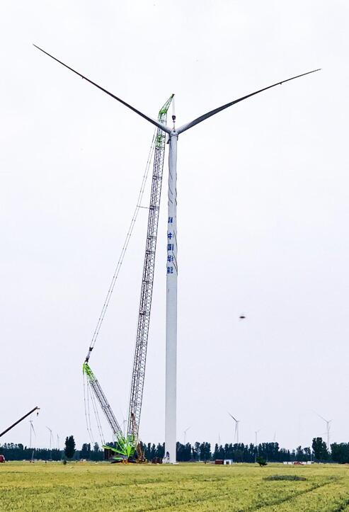 5月24日下午,隨著河南濮陽風電場3號風機葉輪組件吊裝就位,標志著由中國能建浙江火電承擔安裝的濮陽500兆瓦風電工程東北片區(qū)和西北片區(qū)共66臺風機全部吊裝完成。