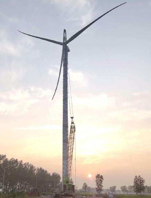 深能劉老莊50兆瓦風(fēng)電場首臺風(fēng)機(jī)吊裝完成