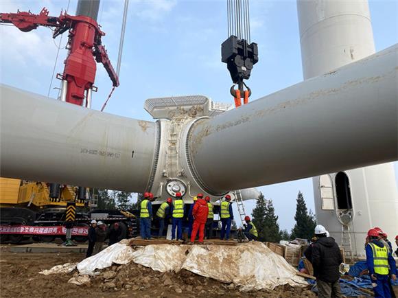 近日,重慶市豐都縣蓮花山風(fēng)電項(xiàng)目首臺(tái)風(fēng)機(jī)圓滿(mǎn)完成吊裝。