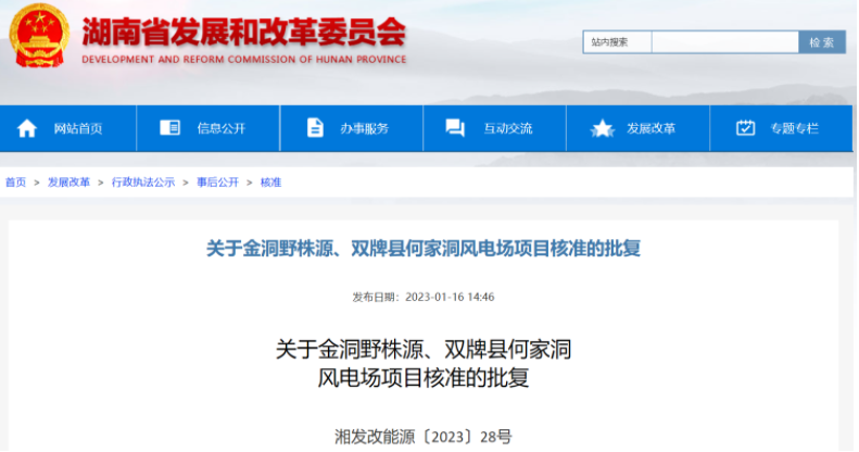 近日,湖南省發(fā)展和改革委員會發(fā)布《關于金洞野株源、雙牌縣何家洞風電場項目核準的批復》,同意建設金洞野株源、雙牌縣何家洞風電場項目,并將其納入湖南省“十四五”風電項目開發(fā)建設方案。
