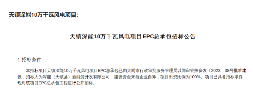 天鎮(zhèn)深能10萬(wàn)千瓦風(fēng)電項(xiàng)目: