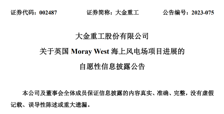 公告顯示,大金重工與歐洲某風電開發(fā)商于2022年5月簽訂了海上風電單樁基礎(chǔ)供應(yīng)合同,約定公司為英國860MW Moray West海上風電場項目(以下簡稱“本項目”或“項目”)建造和交付48根超大型單樁,項目建成后將為多達65萬戶蘇格蘭家庭供電,助力蘇格蘭到2045年實現(xiàn)凈零目標的可持續(xù)發(fā)展承諾。