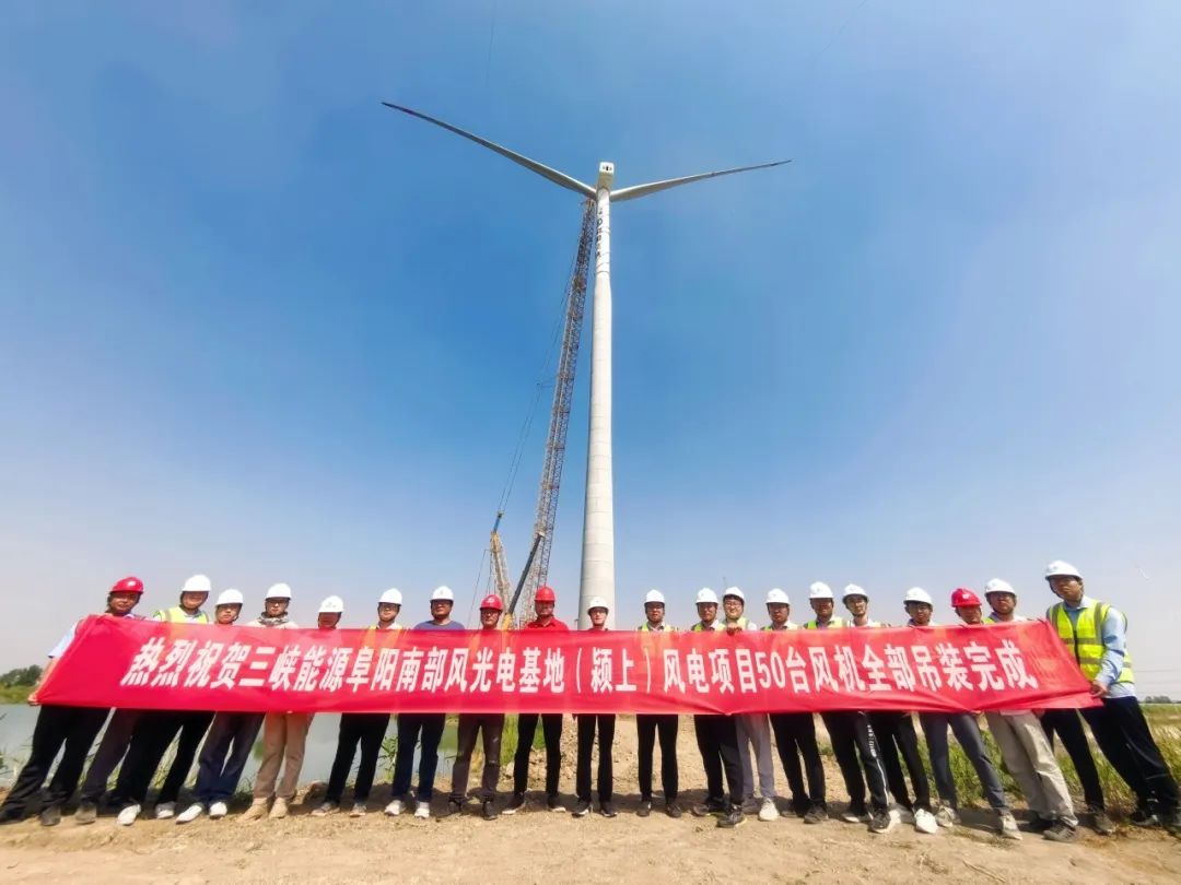 該項(xiàng)目是國(guó)家發(fā)改委、國(guó)家能源局落實(shí)“十四五”可再生能源發(fā)展規(guī)劃發(fā)布的第一批大型風(fēng)電光伏基地項(xiàng)目之一,也是長(zhǎng)三角地區(qū)首個(gè)新能源大型風(fēng)光基地項(xiàng)目。項(xiàng)目投運(yùn)后,50臺(tái)風(fēng)機(jī)年上網(wǎng)發(fā)電量約5.828億度,與相同發(fā)電量的火電相比,每年可節(jié)約標(biāo)準(zhǔn)煤約18.2萬噸,相應(yīng)每年可減少燃煤所造成的二氧化硫排放約96.293噸,氮氧化合物排放約107.734噸,煙塵19.26噸,二氧化碳排放約50.1萬噸,將大大減少煤炭等傳統(tǒng)能源消耗,改善當(dāng)?shù)厣鷳B(tài)環(huán)境,有效推動(dòng)能源結(jié)構(gòu)轉(zhuǎn)型升級(jí),助力實(shí)現(xiàn)國(guó)家雙碳目標(biāo)。