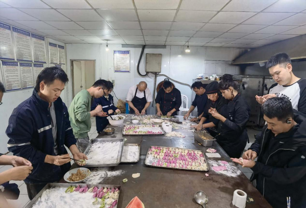 項(xiàng)目上忙碌了一天,到了除夕夜,中屬員工通過共享中國特色美食,一起歡度春節(jié)。