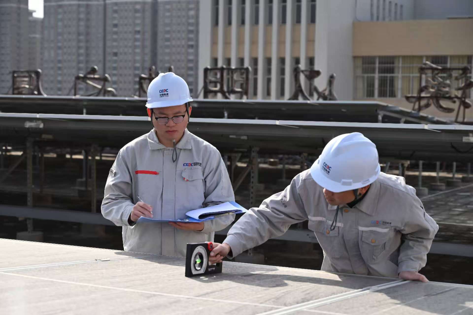 屋頂上的藍(lán)色光伏板在陽光下熠熠生輝,職工們穿梭在屋頂上,在光伏板的連接部位細(xì)致檢查,從腳板安裝到組件螺絲堅(jiān)固,不放過任何一個(gè)可能存在的隱患;在交流側(cè)線路旁,技術(shù)人員對(duì)照著圖紙,一絲不茍地進(jìn)行布線工作,每一個(gè)動(dòng)作都嫻熟而沉穩(wěn)。