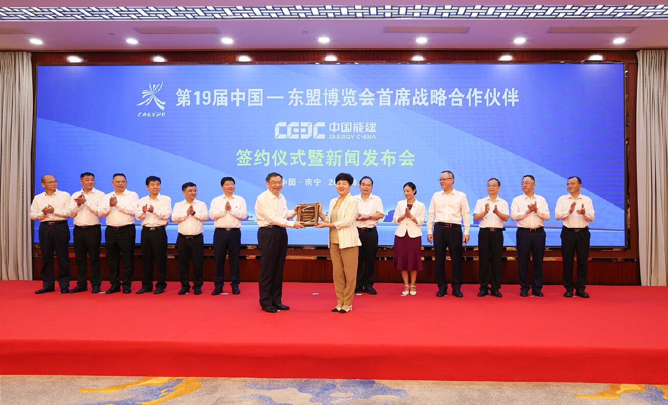 本網(wǎng)訊 8月27日,第19屆中國-東盟博覽會首席戰(zhàn)略合作伙伴簽約儀式暨新聞發(fā)布會在廣西南寧舉行。中國能建首次成為東博會首席戰(zhàn)略合作伙伴。