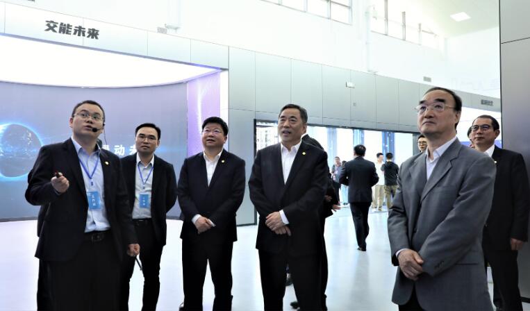 宋海良一行參觀了金鄉(xiāng)零碳智慧服務(wù)區(qū)、中國(guó)能建交能融合展廳,同項(xiàng)目管理人員、技術(shù)人員進(jìn)行交流,仔細(xì)觀看沙盤(pán)模型、智慧管理系統(tǒng)演示、光伏發(fā)電及儲(chǔ)能裝備、電動(dòng)汽車(chē)充換電展示,對(duì)項(xiàng)目建設(shè)情況給予了高度肯定。