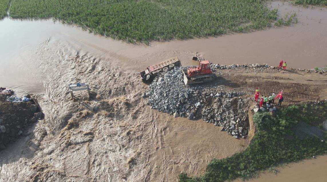 截至8月14日,中國安能救援隊(duì)填筑石料4000方、搶通道路5000米,在對閘門處放置鋼絲網(wǎng),阻止水流對塊石的沖刷,通過全力攻堅(jiān),完成潰口合龍。