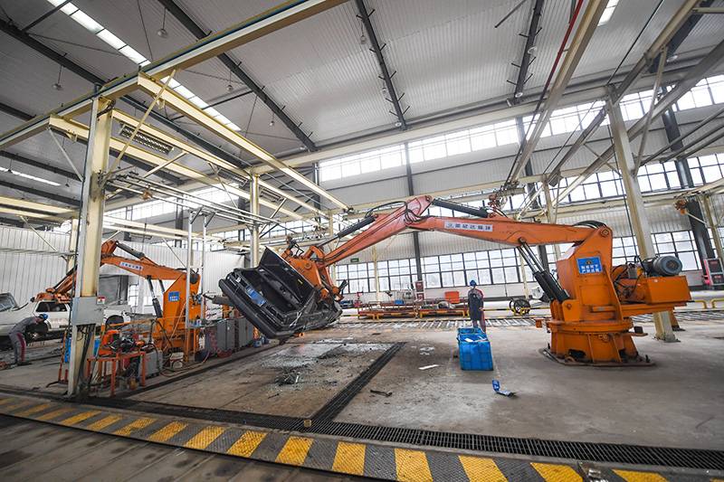 近年來,浙江省湖州市秉承“生態(tài)湖州”發(fā)展戰(zhàn)略,在湖州市吳興區(qū)東林鎮(zhèn)成立機動車回收拆解企業(yè),通過全室內(nèi)作業(yè)、危廢規(guī)范化管理等舉措,做到污染物全部收集;同時,推動傳統(tǒng)人工拆解向自動化機械拆解轉(zhuǎn)變,提高拆解效率和效益,推動汽車拆解行業(yè)綠色可持續(xù)發(fā)展。