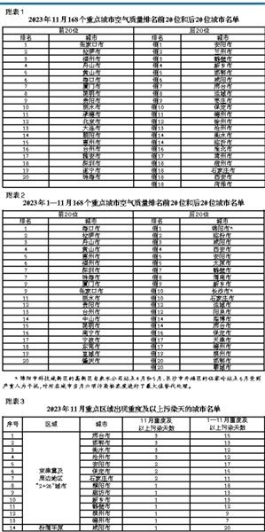 11月和1—11月重點(diǎn)區(qū)域出現(xiàn)重度及以上污染天的城市及具體天數(shù)詳見附表3。