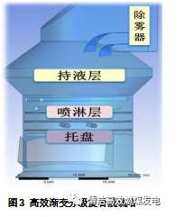 含塵煙氣通過托盤慣性力作用捕集大顆粒的粉塵(),在噴淋區(qū)煙氣與小液滴逆流接觸,慣性碰撞、攔截、擴散、凝聚等作用捕集一部分粉塵,通過持液層鼓泡洗滌煙塵和霧滴,去除細顆粒粉塵、經(jīng)過水平煙道一套三級高性能煙道除霧器撞擊分離,捕集剩余的石膏液滴和細微粉塵,實現(xiàn)排放粉塵含量小于5mg/m3。