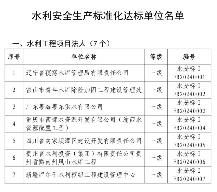 中新網(wǎng)1月22日電 據(jù)中國水利官方微信消息,根據(jù)《水利部關(guān)于印發(fā)〈水利安全生產(chǎn)標準化評審管理暫行辦法〉的通知》《水利部關(guān)于印發(fā)農(nóng)村水電站安全生產(chǎn)標準化達標評級實施辦法(暫行)的通知》《水利部辦公廳關(guān)于印發(fā)〈水利安全生產(chǎn)標準化評審管理暫行辦法實施細則〉的通知》《水利部關(guān)于水利部安全生產(chǎn)標準化評審有關(guān)事項的通知》和《水利部辦公廳關(guān)于水利水電勘測設計等四類單位安全生產(chǎn)標準化有關(guān)工作的通知》,經(jīng)評審,遼寧省葠窩水庫管理局有限責任公司等57個單位為安全生產(chǎn)標準化一級單位、中水淮河規(guī)劃設計研究有限公司等2個單位為安全生產(chǎn)標準化二級單位,名單如下。