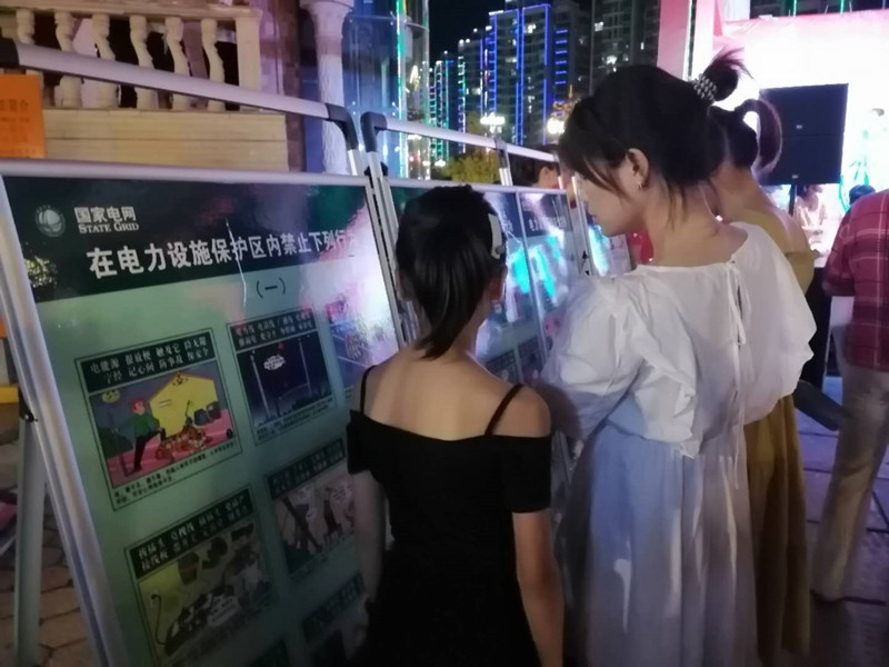 為進(jìn)一步營造社會(huì)公眾共同關(guān)注安全用電、依法用電的氛圍,該公司結(jié)合國安夜市當(dāng)晚文藝匯演人員多聚集的優(yōu)勢, 適時(shí)舉辦安全生產(chǎn)月“安全宣傳咨詢?nèi)?rdquo;活動(dòng),在夜市舞臺(tái)區(qū)“擺攤設(shè)點(diǎn)” ,為群眾帶來“面對(duì)面、零距離”的安全用電宣傳,全面掀起“安全生產(chǎn)月”安全用電宣傳熱潮?;顒?dòng)現(xiàn)場,該公司開設(shè)了家庭用電咨詢、安全用電咨詢等多個(gè)服務(wù)性咨詢臺(tái),對(duì)群眾用電問題一一詳細(xì)做答;工作人員熱情地向來往行人發(fā)放安全用電宣傳畫冊、電力設(shè)施保護(hù)案例啟示等宣傳資料,主動(dòng)向群眾講解安全用電、觸電急救等知識(shí);陳列了電力設(shè)施保護(hù)宣傳等展板,并結(jié)合展板上的漫畫圖片向群眾宣傳電力設(shè)施保護(hù)知識(shí),倡導(dǎo)大家積極參與電力設(shè)施保護(hù)工作,共同維護(hù)電網(wǎng)安全;同時(shí)結(jié)合迎峰度夏工作,宣傳避峰用電、節(jié)約用電,引導(dǎo)大家樹立良好的用電習(xí)慣。