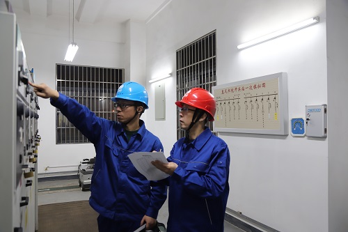 夜間特巡的電力員工首先來到位于小學內(nèi)的惠豐書院開關站進行巡檢,近期氣溫下降校園內(nèi)用電量增大,保障校園用電穩(wěn)定也顯得尤為重要。隨后兩位電力員工認真查看了配電屏上所有儀器指示盤上的電壓是否正常、電流是否超出變壓器上輸出的標準值的數(shù)據(jù),室內(nèi)配電設備是否存在問題,經(jīng)過仔細核查,本開關站都符合供電標準要求數(shù)據(jù)。