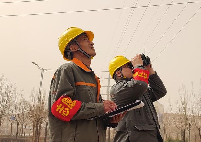 肆虐的西北風讓高新區(qū)籠罩在昏黃的風沙里。為防止大風揚沙惡劣天氣下導致的導線舞動、斷線等特殊情況,3月11日一早,康巴什供電公司高新供電所就組織相關專業(yè)班組開展重要線路的大風揚沙天氣特巡。