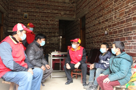 今年受新冠病毒疫情的影響,學(xué)校還未正常開學(xué),孩子們都在家中自行學(xué)習(xí),隊員采取逐戶上門探望的方式開展服務(wù)活動。在李志成、李志祥同學(xué)家中,兩兄弟正一起埋頭溫習(xí)功課,看到‘紅馬甲’叔叔們在這個時期里來到家里,兩兄弟高興得跳了起來,大聲的呼喊在對面山上挖筍的爸爸趕快回家。兄弟倆的媽媽離家出走十多年未回,爸爸又患上了間歇性精神病,三父子相依為命,生活來源主要依靠農(nóng)村低保補(bǔ)助和叔叔的資助,家境貧困令人心酸??吹絻尚值芘d高采烈地拿著叔叔們給的‘紅包’,李爸爸眼中充滿了晶瑩和感動,緊緊地握著隊員們的手無法言語。李依婷同學(xué)是六年級班上唯的女生,文靜秀氣不愛言語,由于父母離異后紛紛外出,小依婷跟著年邁的奶奶共同生活,學(xué)習(xí)非常刻苦,成績在班上排名前列,隊員們?yōu)樗蜕狭伺D毯臀繂柦?,和她一起翻閱了學(xué)習(xí)筆記,親切鼓勵她要努力學(xué)習(xí),好好報答奶奶的養(yǎng)育之恩···