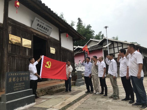 隨后,該支部全體黨員來到愛國主義教育基地、4A級紅色旅游景點——太和鎮(zhèn)康都紅村上街,在原中國工農(nóng)紅軍一方面軍總前委—康都會議舊址暨毛澤東同志舊居面對黨旗,重溫入黨誓詞。黨員們舉起右手,莊嚴(yán)宣誓,堅定如磐初心,踐行使命擔(dān)當(dāng)。宣誓后大家整好隊伍,高高地舉起黨旗,重走紅軍走過的長征路,追尋歷史足跡,追思革命先烈,一邊走一邊唱著紅歌,并在歌聲中想想革命先烈用鮮血和生命換來現(xiàn)在來之不易的生活,想想今后作為一個基層黨員在工作中怎樣去做好一個實踐者,努力把自己的工作干精彩,想想怎樣去體驗踐行歷史與現(xiàn)實的心靈相通……