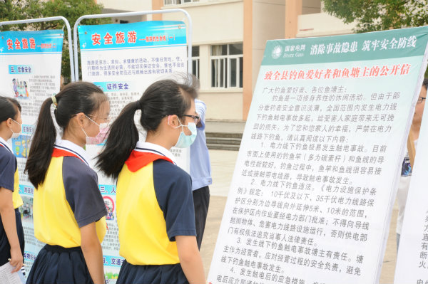 國(guó)網(wǎng)撫州廣昌縣供電公司積極響應(yīng)縣委宣傳部號(hào)召,認(rèn)真聽(tīng)講并設(shè)立安全展板:“居家用電安全常識(shí)”、“預(yù)防常見(jiàn)用電事故”、“如何急救觸電者”......此次“暑期第一課”活動(dòng),提醒了同學(xué)們?cè)诩倨诶镆惨⒁庖咔榉揽?,要遠(yuǎn)離危險(xiǎn)場(chǎng)所、避免危險(xiǎn)行為,進(jìn)一步增強(qiáng)了同學(xué)們的安全觀念和自我保護(hù)意識(shí),對(duì)少年兒童的健康成長(zhǎng)起到了良好的安全護(hù)航作用,讓同學(xué)們度過(guò)一個(gè)健康、安全的暑假。