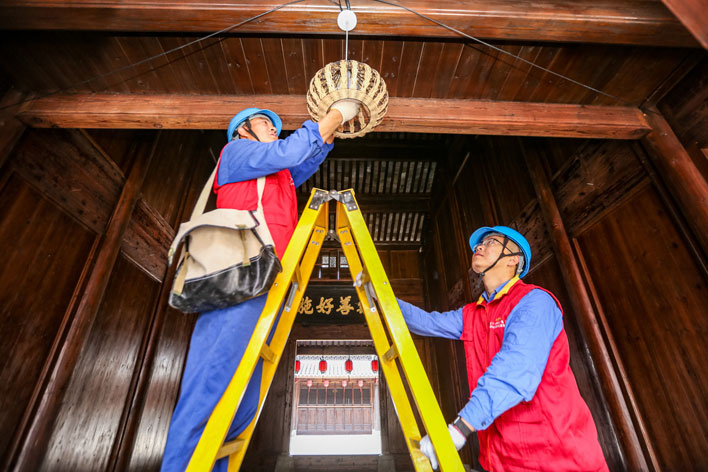 隨著秋冬季干燥氣候的到來,考慮到走馬樓的特殊木質(zhì)結(jié)構(gòu),國家電網(wǎng)浙江電力(鄞州)紅船共產(chǎn)黨員服務(wù)隊特意來到走馬樓,為該處做了一次綜合性的“體檢”工作。服務(wù)隊員重點(diǎn)對走馬樓的墻頭線、計量裝置進(jìn)線以及計量裝置表后線進(jìn)行了一一檢查,排查線路短路、絕緣老化和設(shè)備故障等運(yùn)行隱患,針對照明設(shè)備損壞的情況,服務(wù)隊員利用自身技術(shù)技能,現(xiàn)場更換受損設(shè)備,共為走馬樓更換燈泡20盞,修復(fù)燈座15個。此外,供電人員還來到走馬樓另一側(cè)的居住區(qū),為其中居住的居民更換老舊表箱,消除居民日常生活中的用電隱患。為了保障走馬樓的日常用電安全,服務(wù)隊員還向管理人員進(jìn)行了安全用電知識的科普宣傳,叮囑管理人員注意木質(zhì)結(jié)構(gòu)房屋的用電安全,謹(jǐn)慎使用大功率電器,以免發(fā)生火災(zāi)。